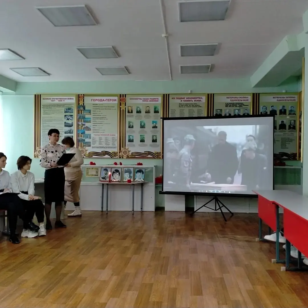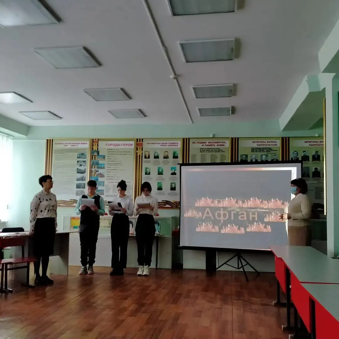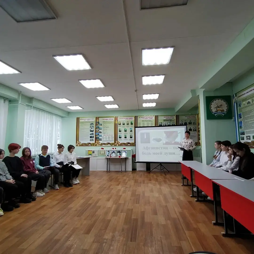 15 февраля заместитель директора по ВР Дубровская Илюзя Рамилевна провела урок мужества в 8-9 классах. Тема урока: "Афганистан-ты боль моей души".В гостях был начальник отделения подготовки и призыва граждан на военную службу военного комисариата Демского р-на г.Уфы и Уфимского р-на РБ, ветеран боевых действий и ВДВ Артемьев Сергей Викторович.