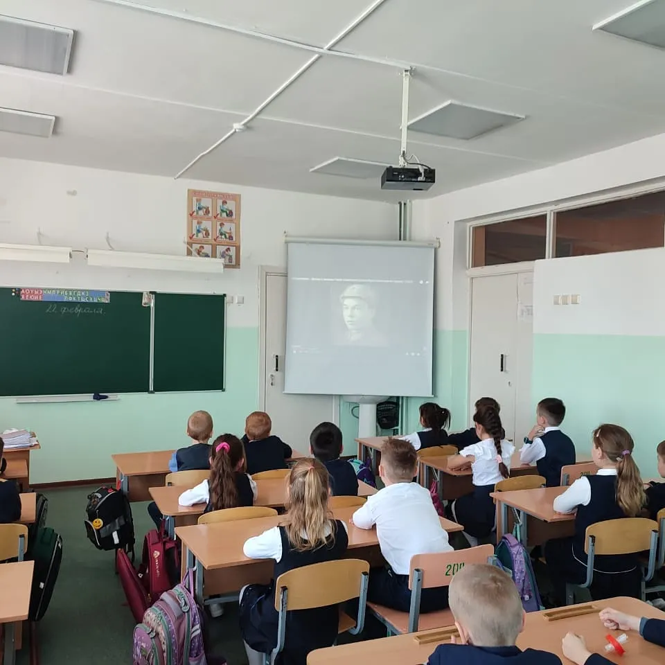 В канун Дня защитника Отечества 22 февраля в 1б классе был организован просмотр познавательного фильма про героя Советского союза Гареева М.Г.