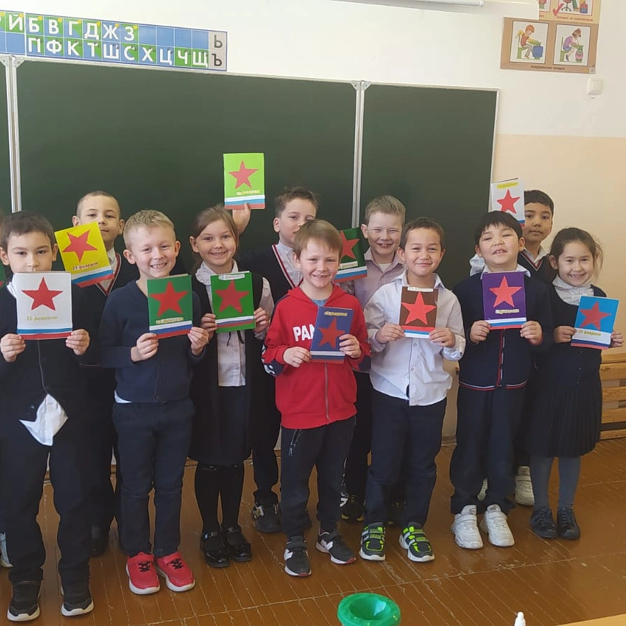 22 февраля 2020 года в МОБУ СОШ д. Подымалово девочки 1 а класса поздравили мальчиков с Днём Защитника Отечества, подарили памятные подарки. На уроке технологии ученики своими руками сделали открытку для пап.