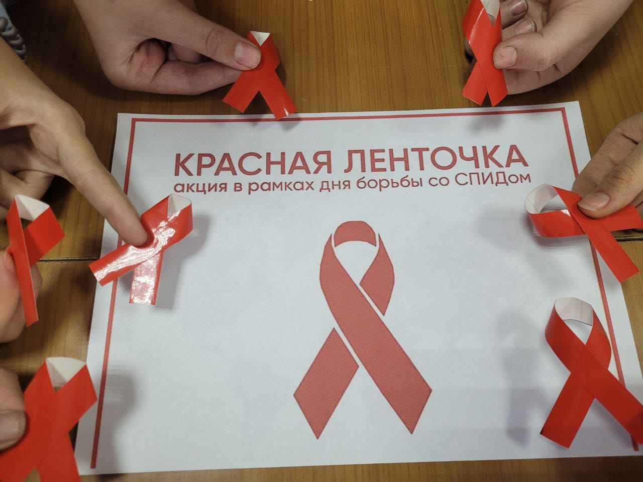 Сегодня для детей прошла тематическая беседа «Мы за здоровую нацию», в ходе которой ребята познакомились с понятиями СПИД и ВИЧ, узнали о способах распространения и мерах профилактики, узнали, что символом поддержки и надежды на будущее без СПИДа является красная ленточка,