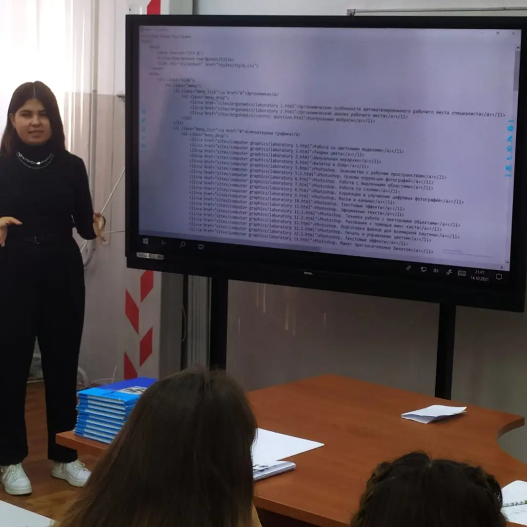 15 октября 2021 г. в МОБУ СОШ д.Подымалово на базе центра "Точка роста" прошёл день ИТ-знаний. В рамках сетевого взаимодействия программист из Уфимского многопрофильного колледжа Арина рассказала о профессии программист, о плюсах и минусах этой специальности. Для обучающихся 8-9 классов был проведён мастер- класс по сайтостроению на разных языках программирования.