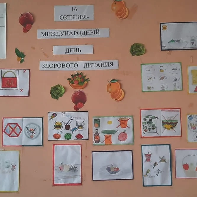 16 октября в Международный день здорового питания в МОБУ СОШ д.Полымалово прошёл ряд мероприятий: увлекательный классный час в 5-м классе, а также выставка рисунков обучающихся на тему "Здоровая и вредная еда".