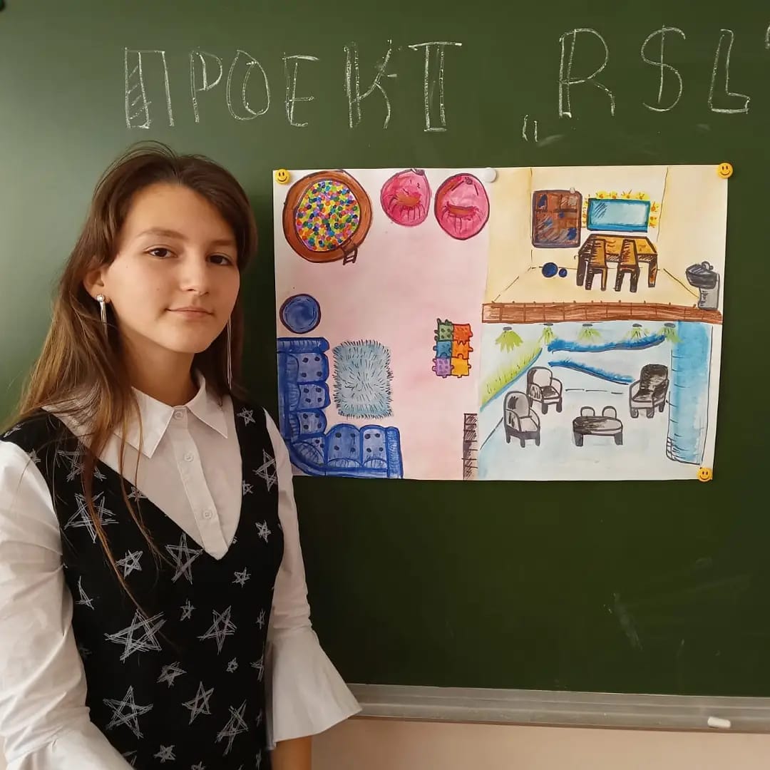 В рамках " Инициативного бюджетирования" ученицей 9 класса Нуриевой Адель был представлен проект " RSL". Он подразумевает организацию комнаты отдыха (реклакса), логопедический уголок и соляную шахту.
