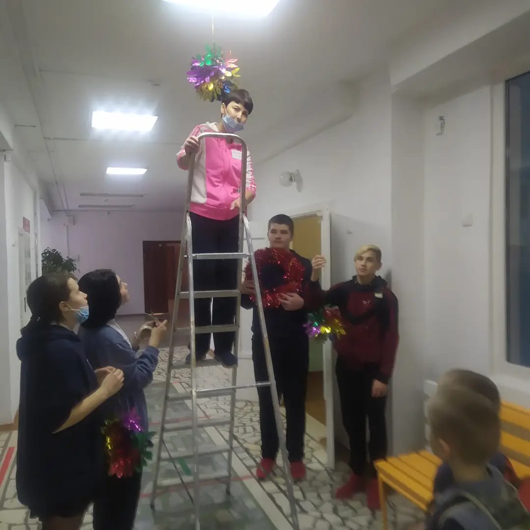 Скоро Новый год и начались мероприятия по украшению школы! Зам.директора по ВР Дубровская И.Р. с 8-9 классами празднично украсили школьное фойе.
