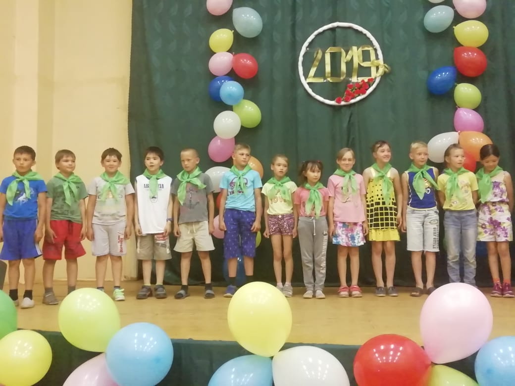 В праздничном концерте, посвященном закрытию лагеря, приняли участие сами ребята – молодые таланты, которые выявили себя во время смены. Они танцевали, показывали веселые сценки, пели песни. Особенно нашим детям полюбились танцевальные флеш-мобы. Не смолкали дружные аплодисменты в адрес выступающих. Также все отряды получили грамоты, как «Самый дружный отряд», «Самый спортивный отряд», «Самый веселый отряд». Директор школы Канчурин М.Н. поздравил ребят с окончанием лагерной смены, пожелал веселого, полезного продолжения каникул, напомнил о правилах безопасности в летний период.