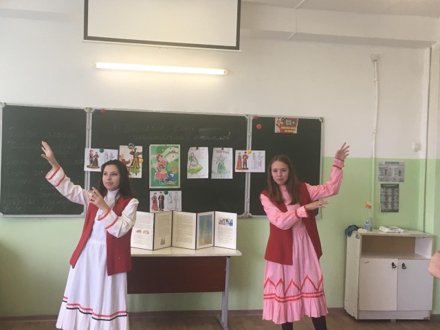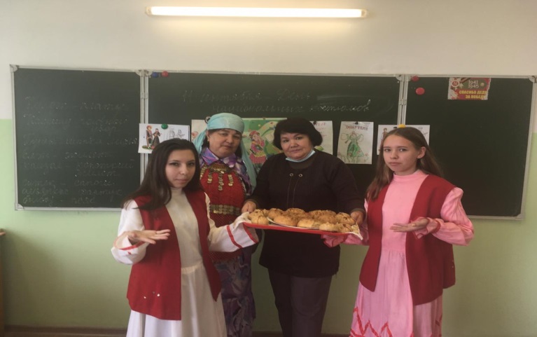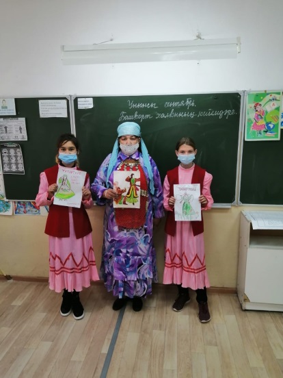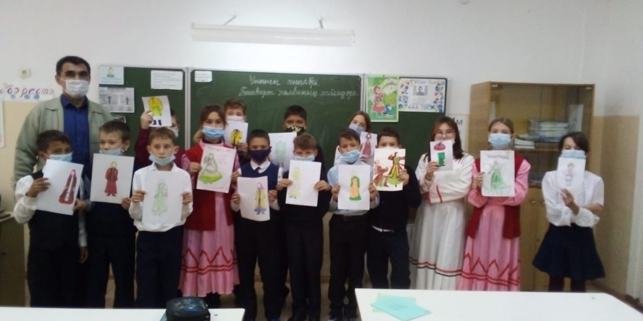 Учителем родных языков Ясыбаевой Р.С. была подготовлена презентация на тему «Традиции и культуры разных народов», подготовлены демонстрационные материалы по национальным костюмам коренных народов Урала – башкир, Урала – Поволжья – татар, РФ – русских. Ученики прослушали о каждом уникальном национальном костюме: русских, татар, башкир, мордва и т.д. Были охвачены ученики 5-6 классов и 7-8 классов, обучающие и изучающие по программе «Родной язык и литература».Между учителями – предметниками, классными руководителями и учениками, переплетается тесное сотрудничество. Именно сегодня, был проведен классный час, посвященный к Году башкирского языка и ко Дню национального костюма в 9 классе, вместе с кл. руководителем Васильевой А.К. и учителем родных языков Ясыбаевой Р.С.