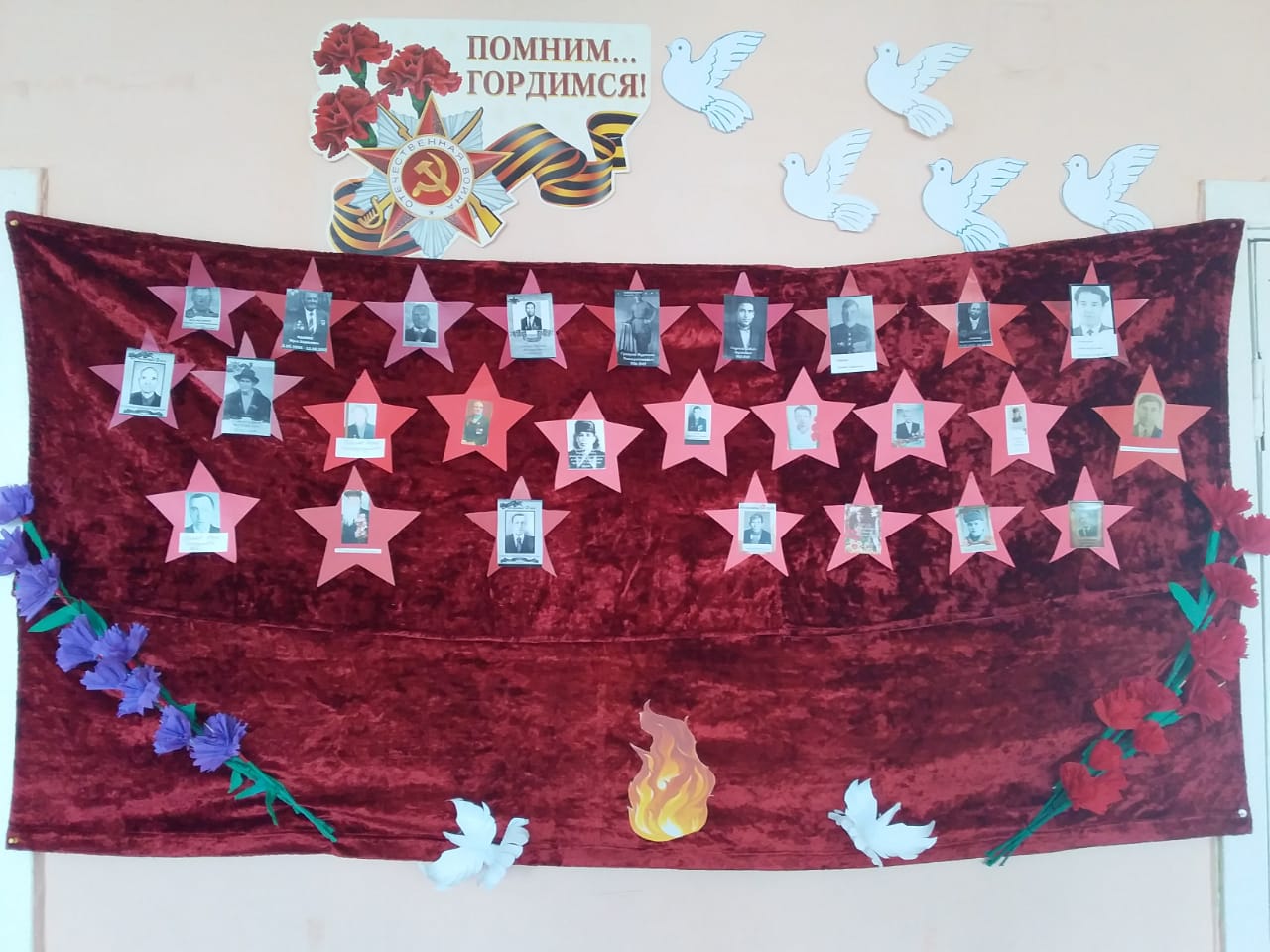 Неделя с 26 по 30 мая в нашей школе была посвящена 9 мая-Дню Победы. Классные часы,выставки рисунков,поделок,викторины проведены с целью сохранения трепетного отношения к празднику Победы, уважения к заслугам и подвигам воинов Великой Отечественной войны. С помощью родителей создан стенд "Звезда героя",ставший объектом особой гордости младших школьников.